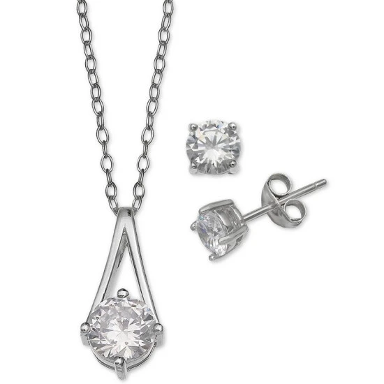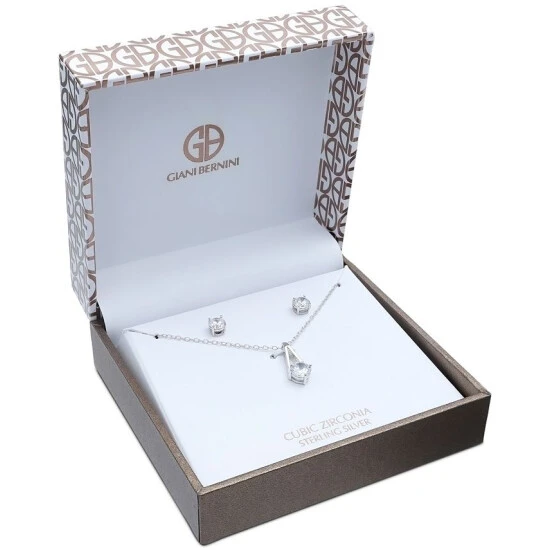Be the epitome and grace and sparkle in this elegant cubic zirconia pendant necklace and coordinating stud earring jewelry set from Giani Bernini.