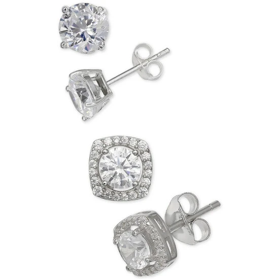 Lavish on the sparkle with this two piece cubic zirconia stud earrings set from Giani Bernini. One pair is solitaire stud earrings and the other is a gorgeous halo design.