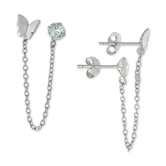Showcase your double piercings with these elegant cubic zirconia butterfly chain drop earrings from Giani Bernini.
