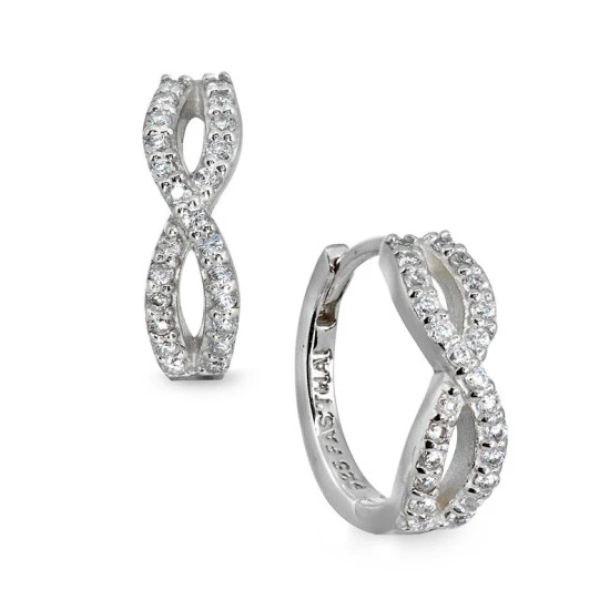 A pair of earrings you’ll love for infinity! This Cubic Zirconia Infinity huggie hoop earring in sterling silver is specially designed to hug your ear for a comfortable fit for everyday wear.