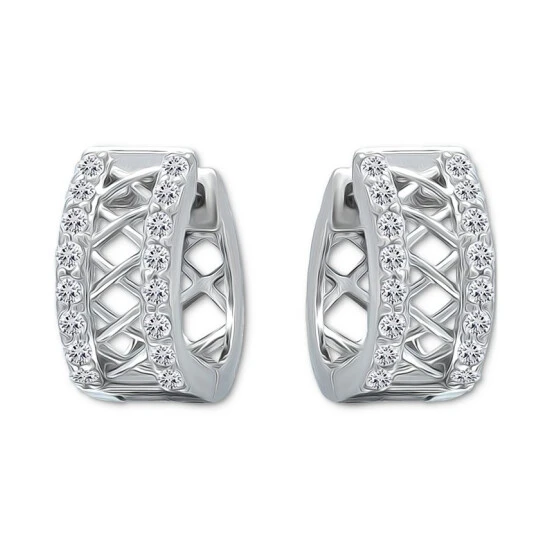 An elegant lattice design is complemented by cubic zirconia in these gorgeous Giani Bernini huggie hoop earrings.