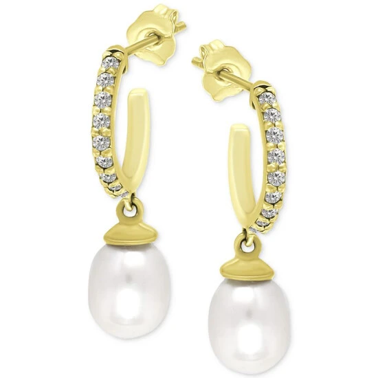 Opt for classic with these beautiful freshwater pearl and cubic zirconia dangle hoop earrings from Giani Bernini.