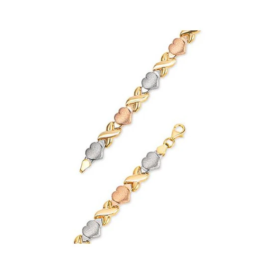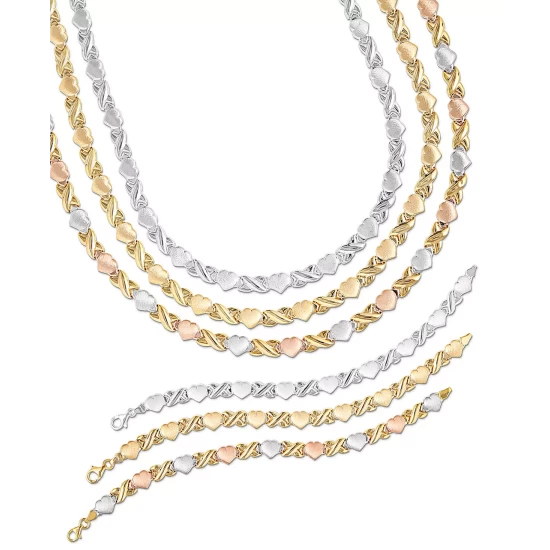 Pretty hearts alternate with polished “x” kisses on this whimsical tricolor statement necklace from Giani Bernini. Also in gold over silver and sterling silver.