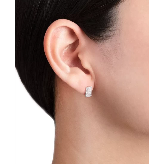 Channel-set cubic zirconia create a sparkling effect on on these inside and out hoop earrings created by Giani Bernini.