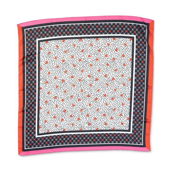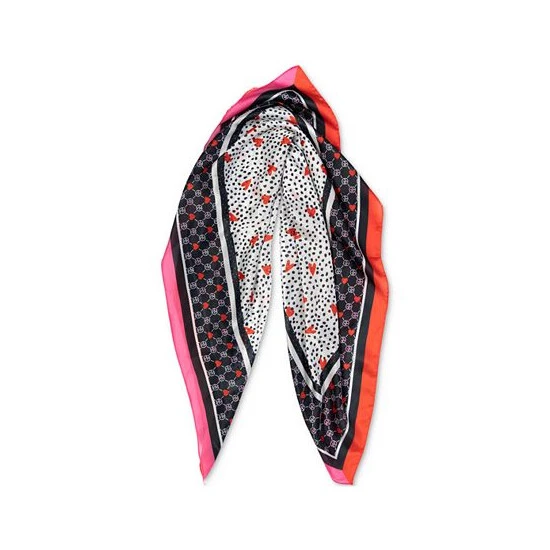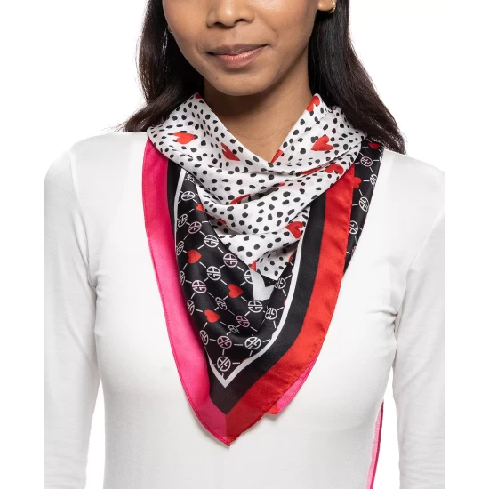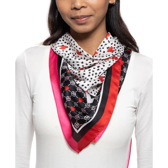 Bright colors combine with fun mixed prints on this chic heart-print scarf from Giani Bernini.