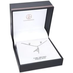 Flash Sale 🌟 Giani Bernini 2-Pc. Set Cubic Zirconia Initial Pendant Necklace & Solitaire Stud Earrings In Sterling Silver, Created For Macy’s 🎁